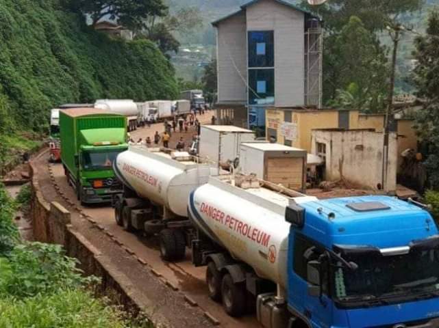 Des camions remorques remplis des diverses marchandises ainsi que les camions citernes, sont bloqués...